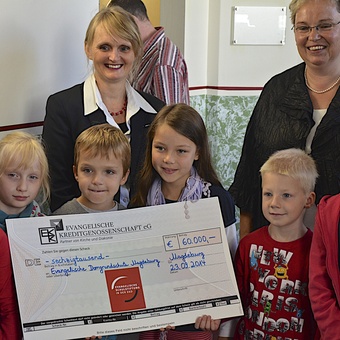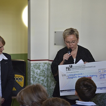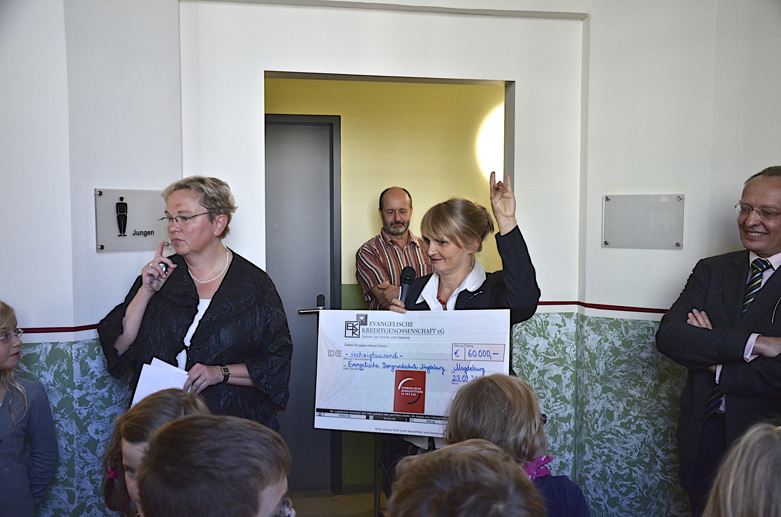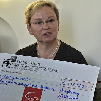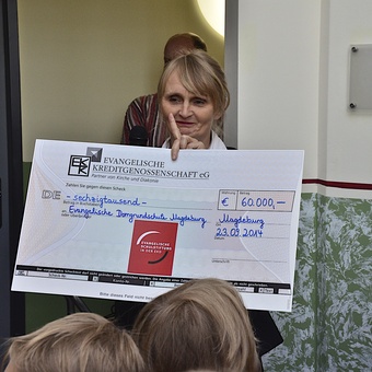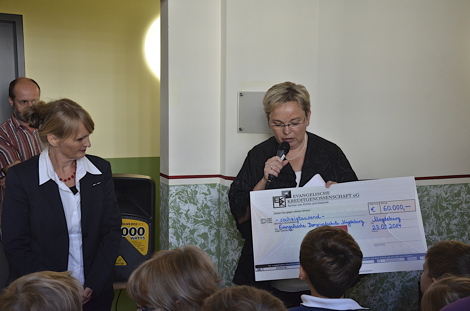 Die Evangelische Domgrundschule Magdeburg feierte am 23. September 2014 mit einem Schulfest die Übergabe der Förderplakette der Evangelischen Schulstiftung in der EKD.