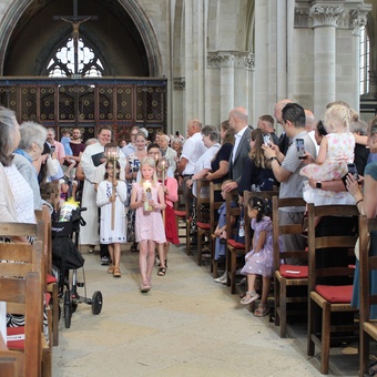 Nach den Fürbitten und dem Vater unser konnten die Kinder noch einmal ihre Stimmen erklingen lassen zum letzten Lied „Gott, dein guter Segen“. Die Gemeinde zog in den Domgarten aus und die Kinder konnten endlich die lang ersehnten Schultüten in Empfang nehmen.