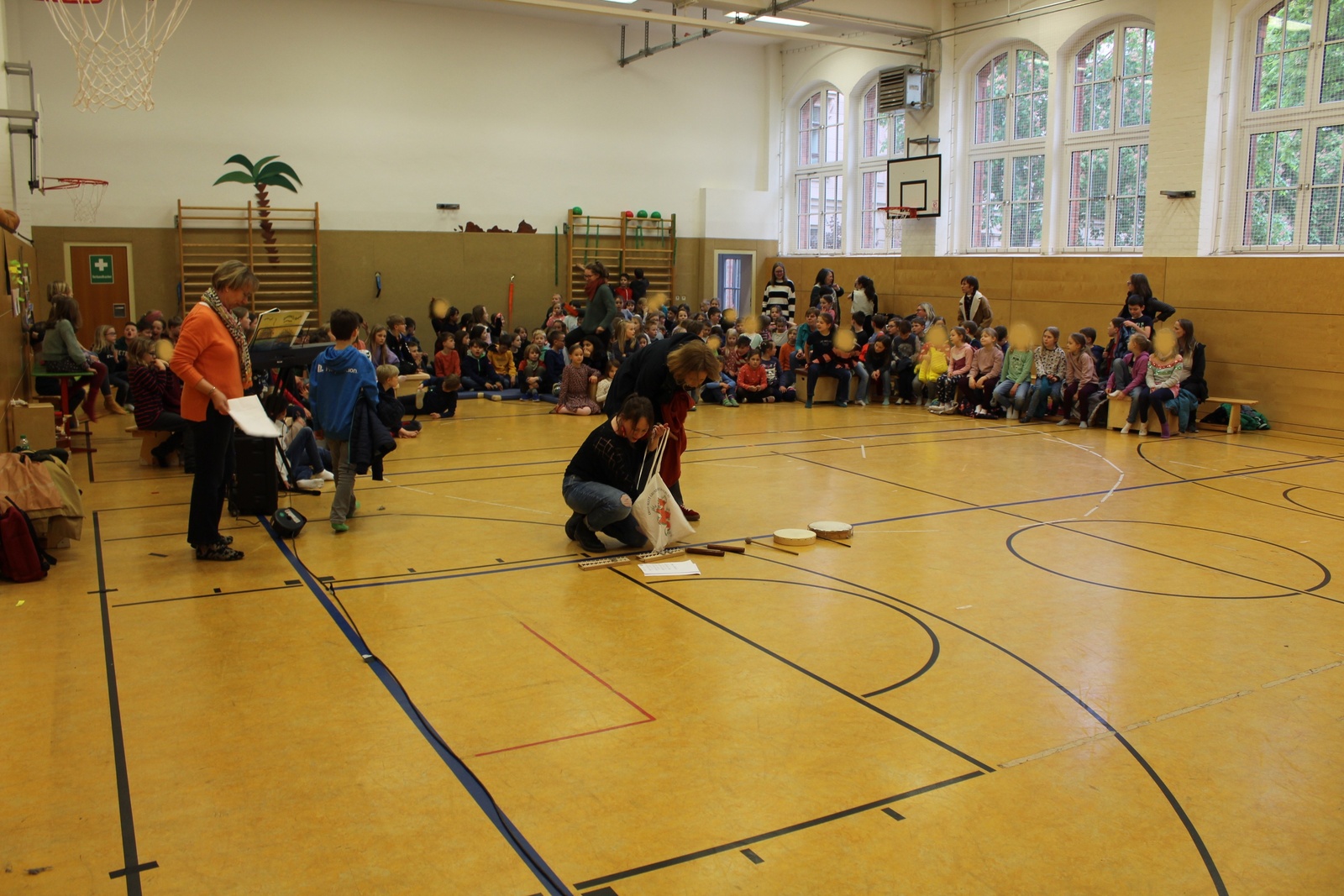 Schon etwas mutiger konnten dann die Kinder der Klasse 2a ihr Lied „Alle Vögel sind schon da“ darbieten und sich dabei mit dem Spielen einzelner Metallophon-Töne begleiten.