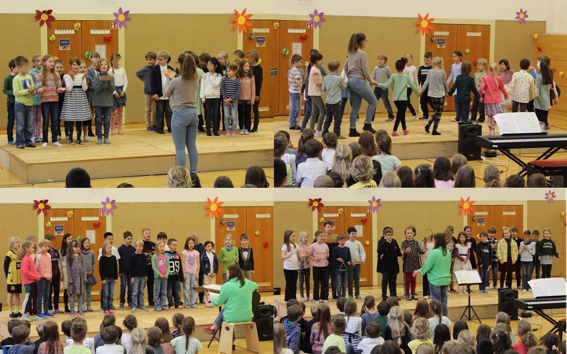 Die Klasse 4 gestaltete das Lied „Die Vogelhochzeit“, wobei die verschiedensten Instrumente wie Ukulele, Xylophon, Metallophon und Boomwhacker zum Einsatz kamen. Zwei Schülerinnen trauten sich nicht nur ein einen Soloauftritt, sondern studierten noch ein gemeinsames Stück mit Klavier und Geige ein. Das gab einen besonders großen Applaus.