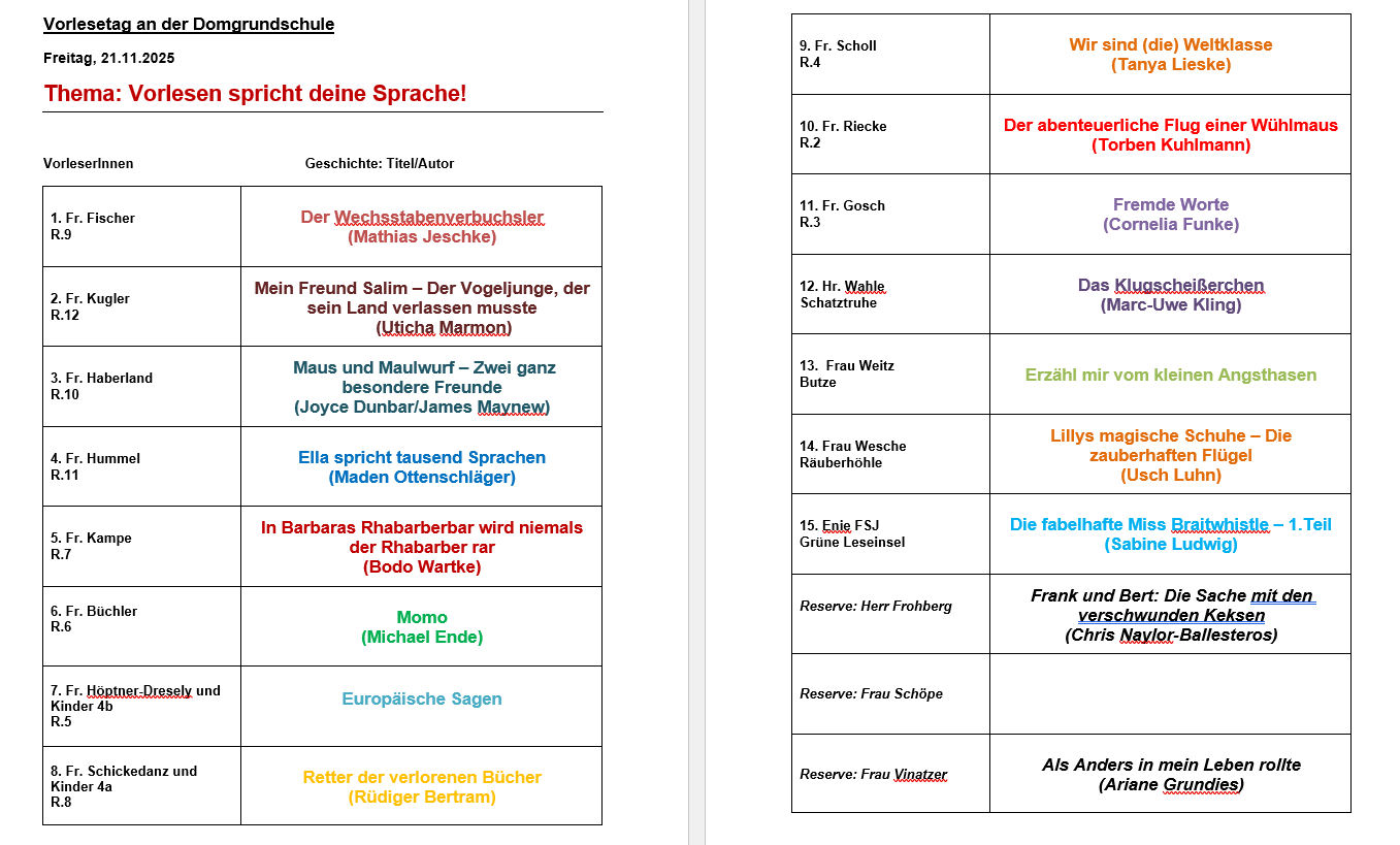 Am Fr, 21.11.2025 wurde wieder fleißig vorgelesen an der Domgrundschule.