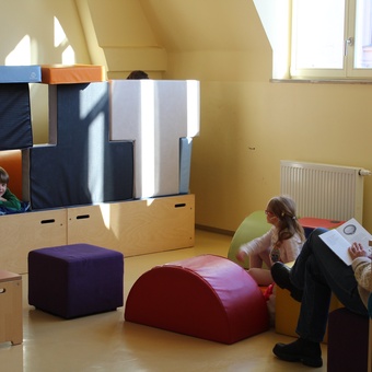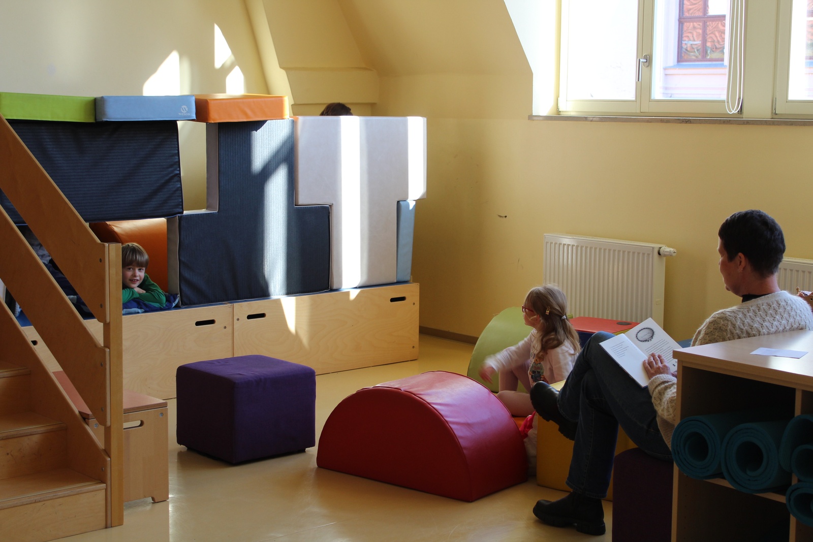 Um 10.15 Uhr flitzten sie wie kleine Ameisen durch das Schulhaus und lümmelten sich gemütlich in die vorbereiteten Räume. Die beiden 4. Klassen hatten sich wieder vorbereitet und so lasen Kinder für Kinder. Einige Kinder lauschten so ihren Geschwistern beim Vorlesen, der Rest genoss es, liegend oder sitzend von Pädagoginnen bzw. Pädagogen und Elternteilen in die Bücherwelt entführt zu werden. Eine große Auswahl erwartete die Schülerinnen und Schüler… da viel die Wahl nicht leicht.