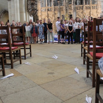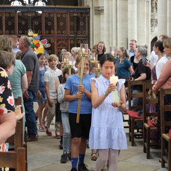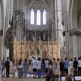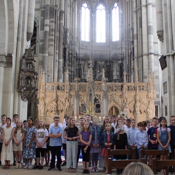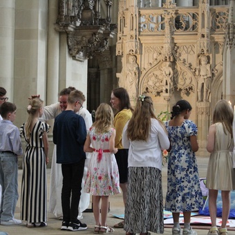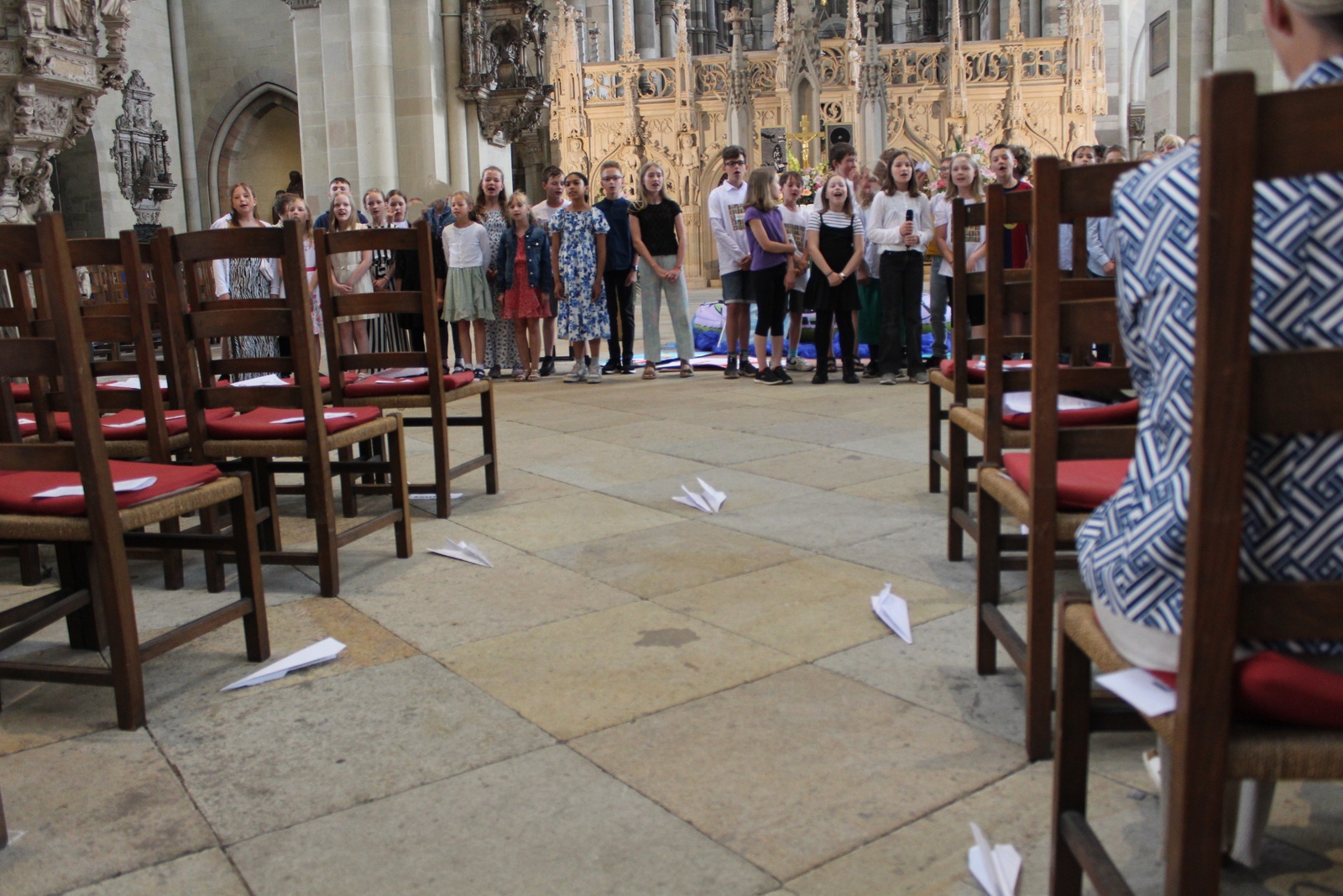 Später erwarteten die Eltern mit weiteren Familienmitgliedern die Schulgemeinschaft im Dom und wohnten der feierlichen Verabschiedung der Kinder bei.