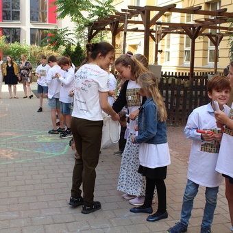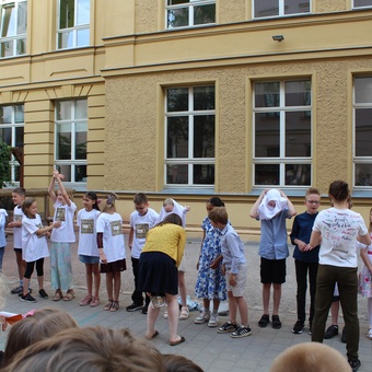 Auch die Hortpädagoginnen wollen ihren – nun ehemaligen - Schützlingen ein kleines Andenken überreichen und verteilen Aufmerksamkeiten an die Schülerinnen und Schüler.