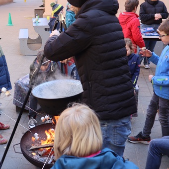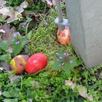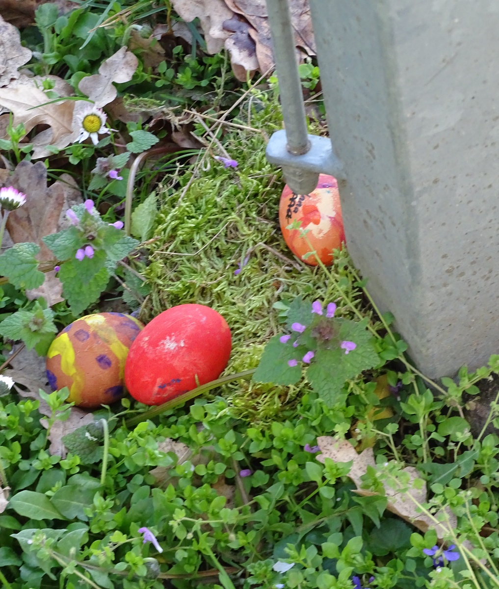 Es wurden Eier gefärbt, gesucht (und auch gefunden), Frühblüherbücher gebastelt und ausgepustete Eier verziert. Die Ferienkinder hatten große Freude am Einstimmen auf das Osterfest. Die Feuerschale am Freitag bildete den krönenden Abschluss. Es wurden Kartoffeln über Feuer gekocht, Würstchen und Marshmallows gegrillt.
