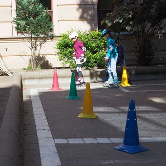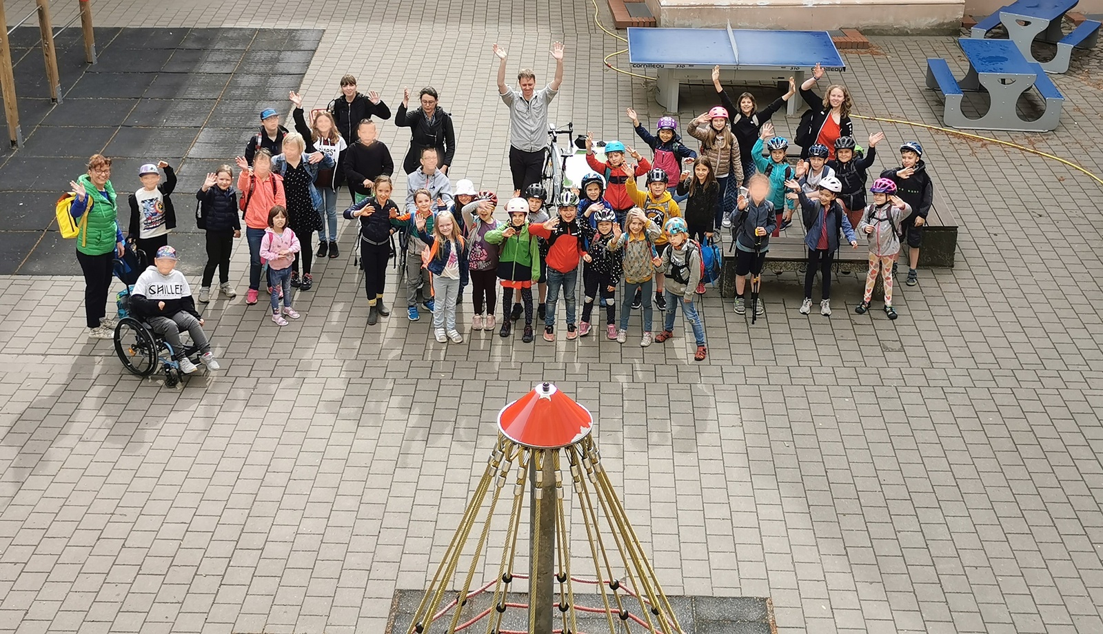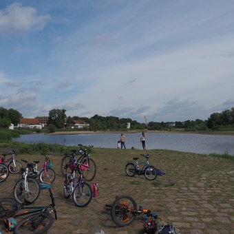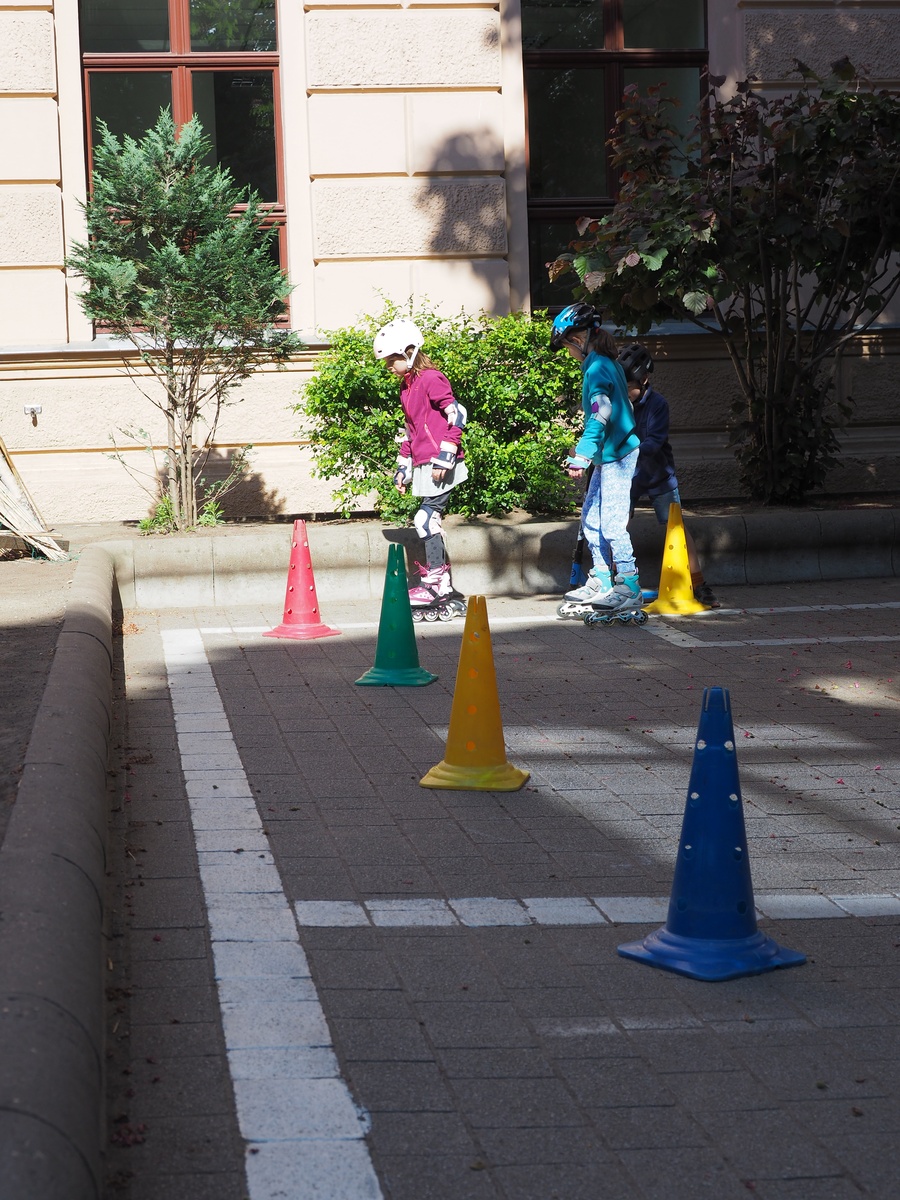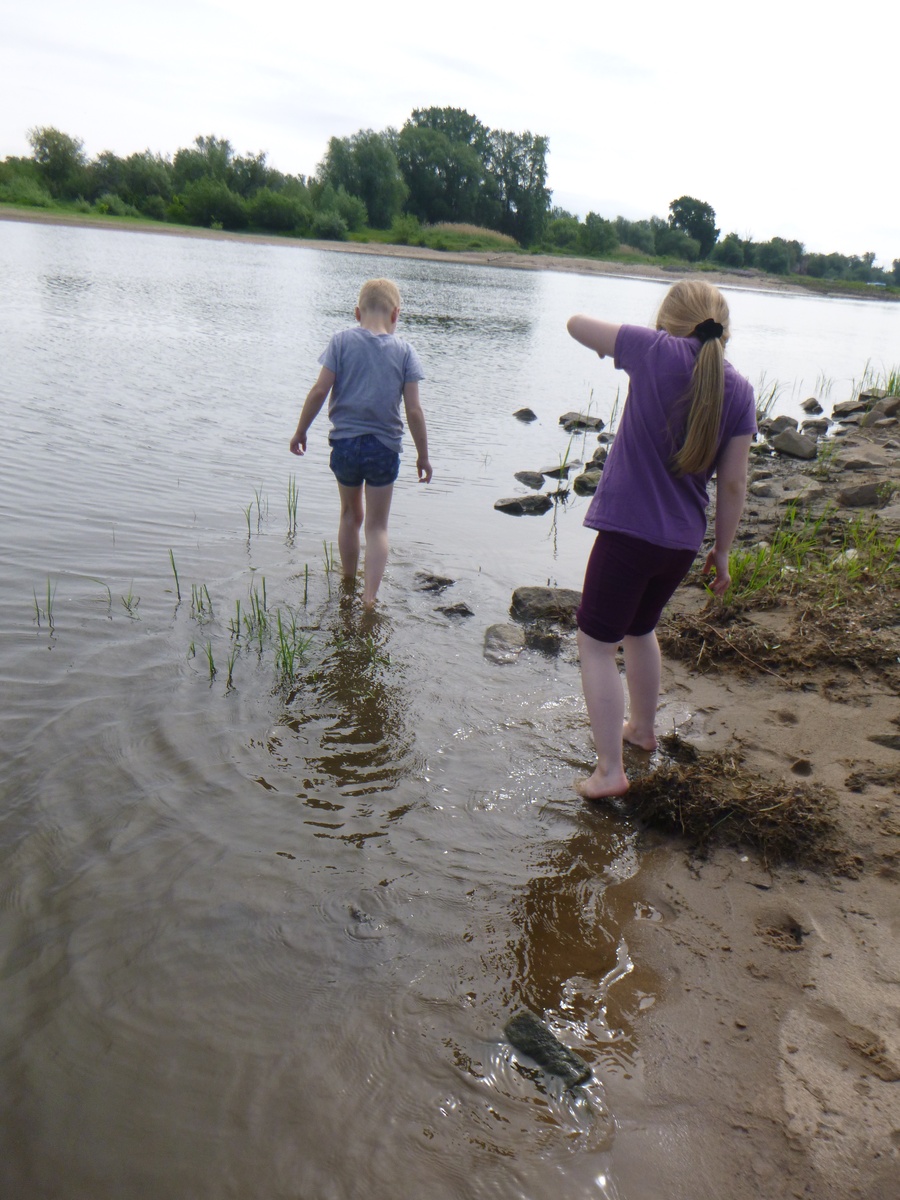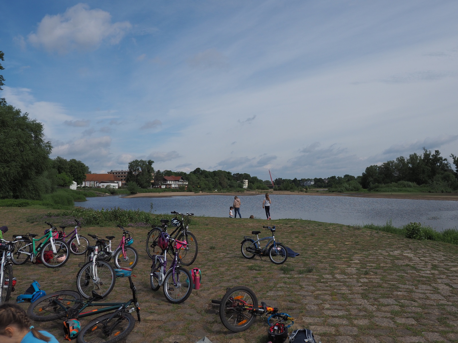 Das Wetter lockte unsere Ferienkinder nach draußen. Die Inliner konnten auf dem Schulhof ausprobiert werden und eine Rad- und Wandertour führte alle an die Elbe.