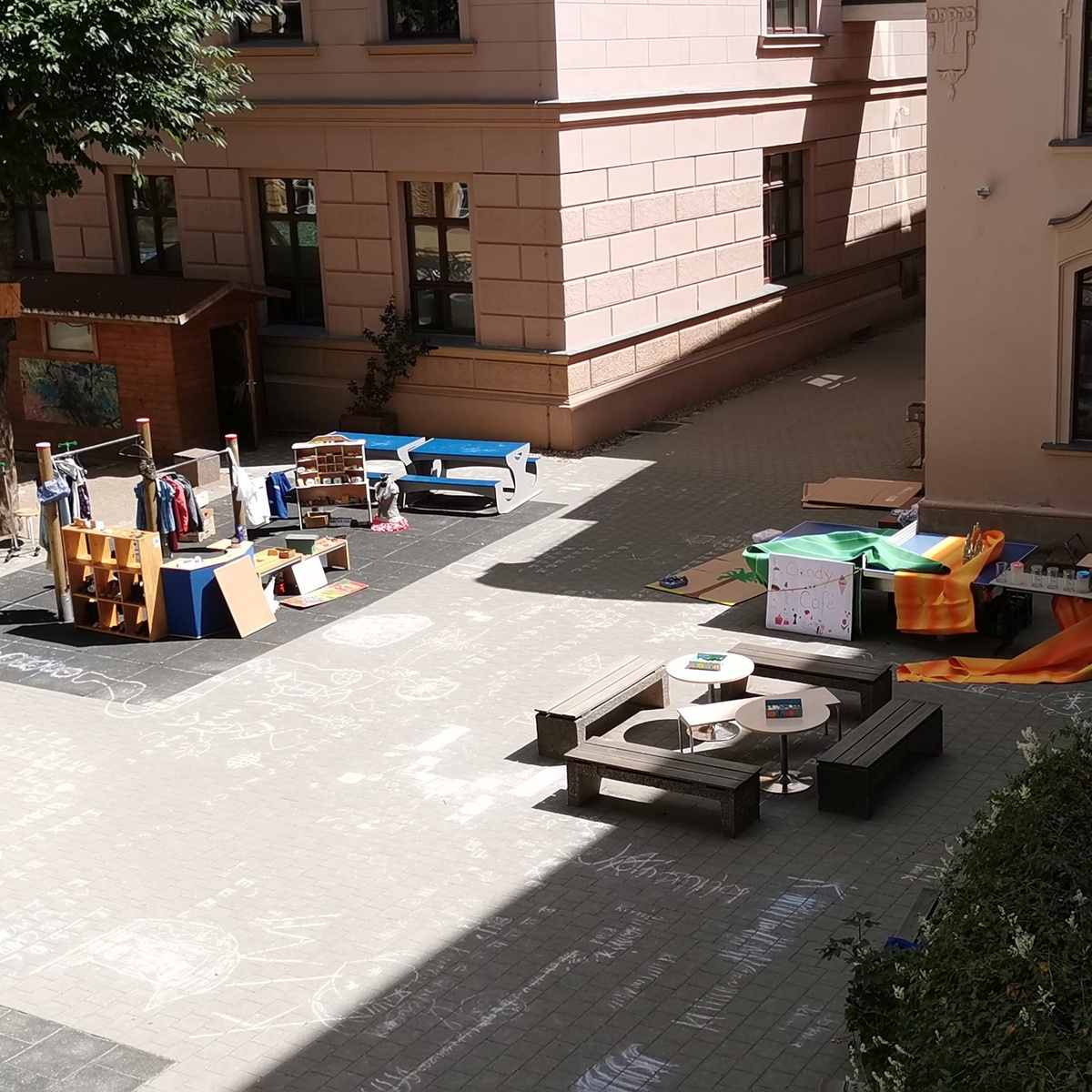 In der zweiten Woche verändere sich „Hort-City“ räumlich und wanderte in den Lindenhof. Dort konnten die Kinder sich als Tischler ausprobieren oder sie wurden Krankenschwester oder Pfleger auf der Krankenstation für eventuelle Unfälle. Auch eine Schneiderei wurde durch die Kinder ins Leben gerufen. Für den kulturellen Teil sorgte das „CandyCafé“ und ein Ausflug zum Spielplatz und ins Freibad.