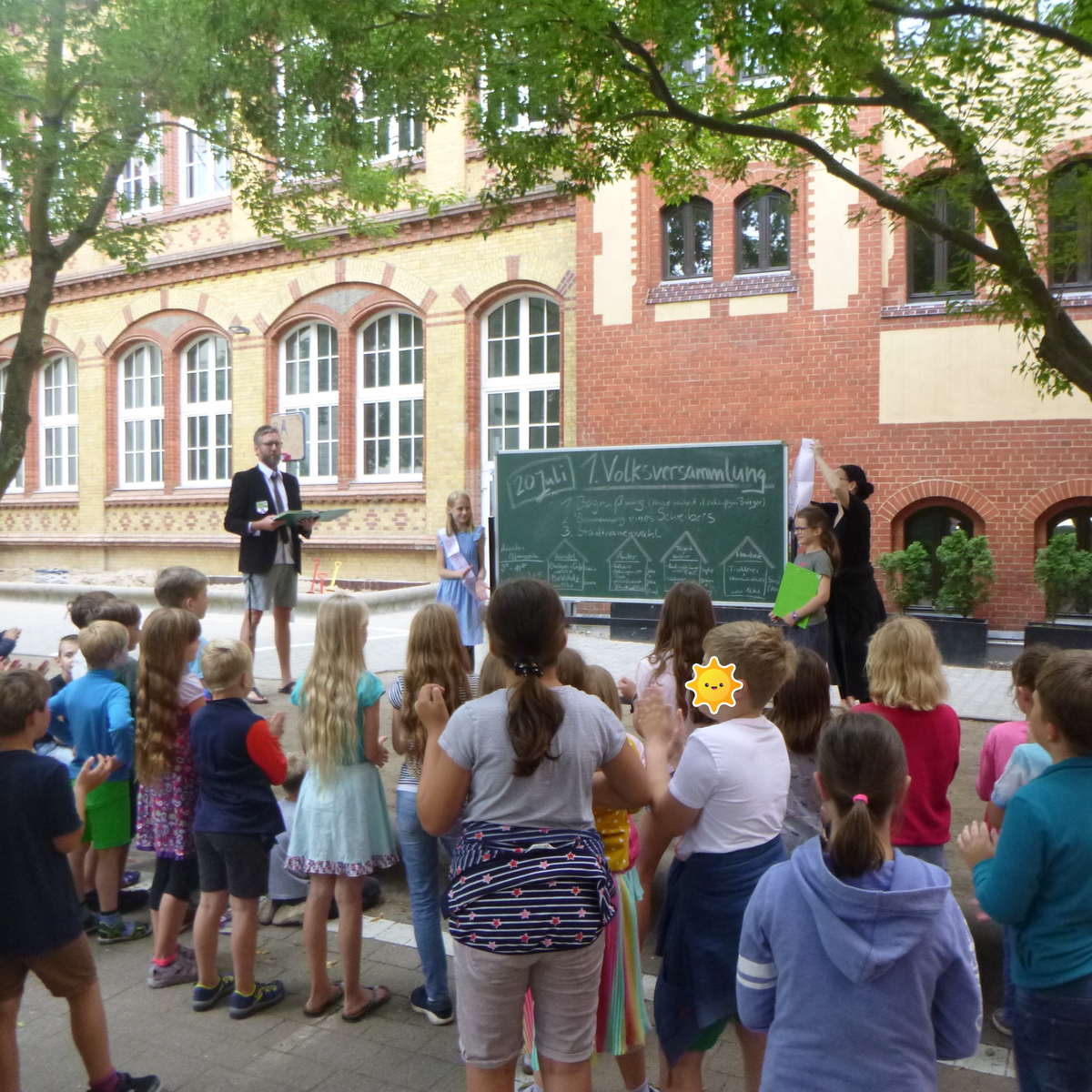 Die erste Ferienwoche, wie auch alle folgenden, startete mit der Bürgermeisterwahl. Jolanda, als erste gewählte Bürgermeisterin eröffnete die Kinderstadt und erläuterte deren Geschichte. Sie stellte alle Berufe vor und erklärte, wann und wie die Kinder ihren Lohn verdienen. Jeden Tag gab es für die abgeleistete Tätigkeit einen Verdienst in der „Hort-City“ eigenen Währung „Hörta“. Nach der Vorstellung der Berufe und der Entscheidungsfindung der Kinder, gingen alle tatkräftig an die Arbeit.