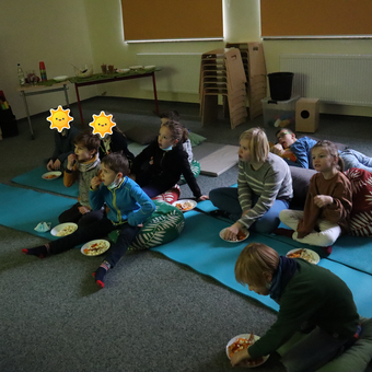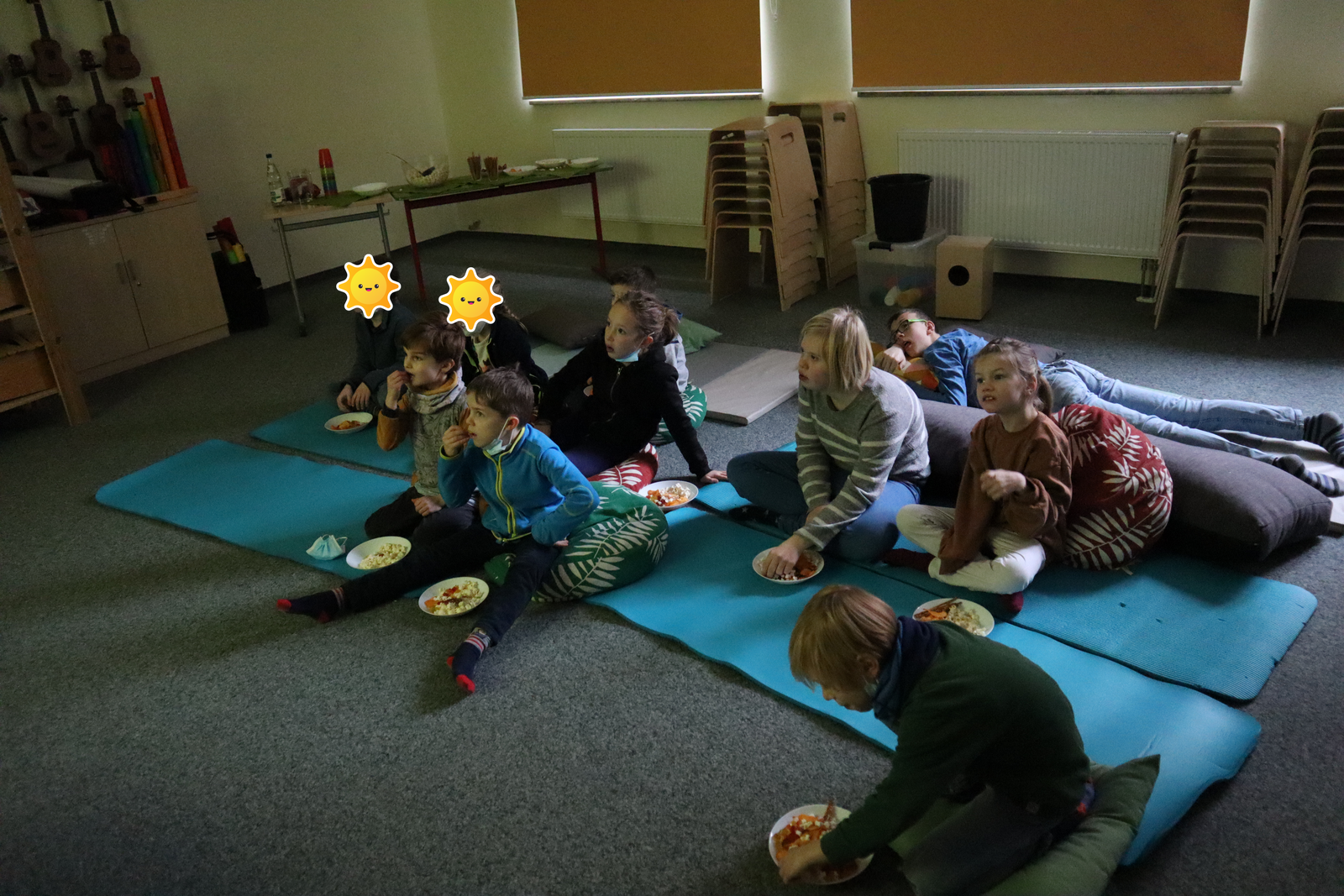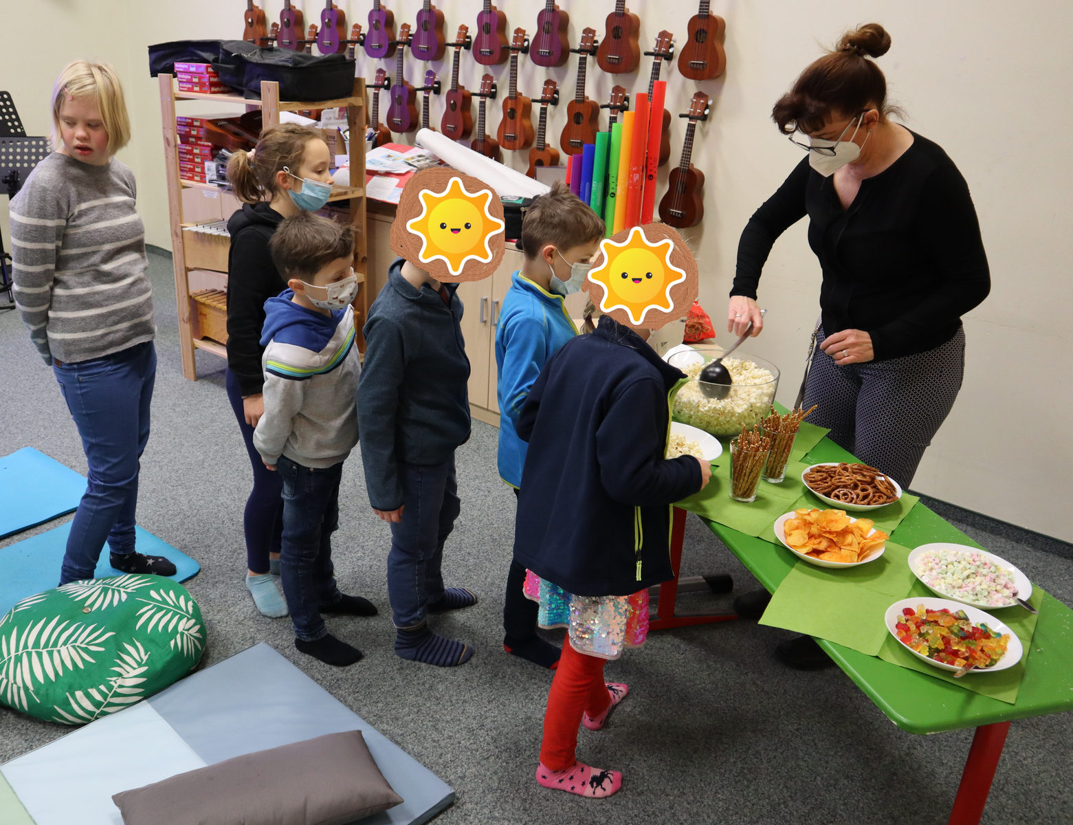 Es durfte zu Beginn der Ferien dann natürlich auch genascht werden, etwa zum Kinonachmittag im Hort... So entspannen die Kinder gleich und genießen die freie Zeit.