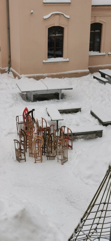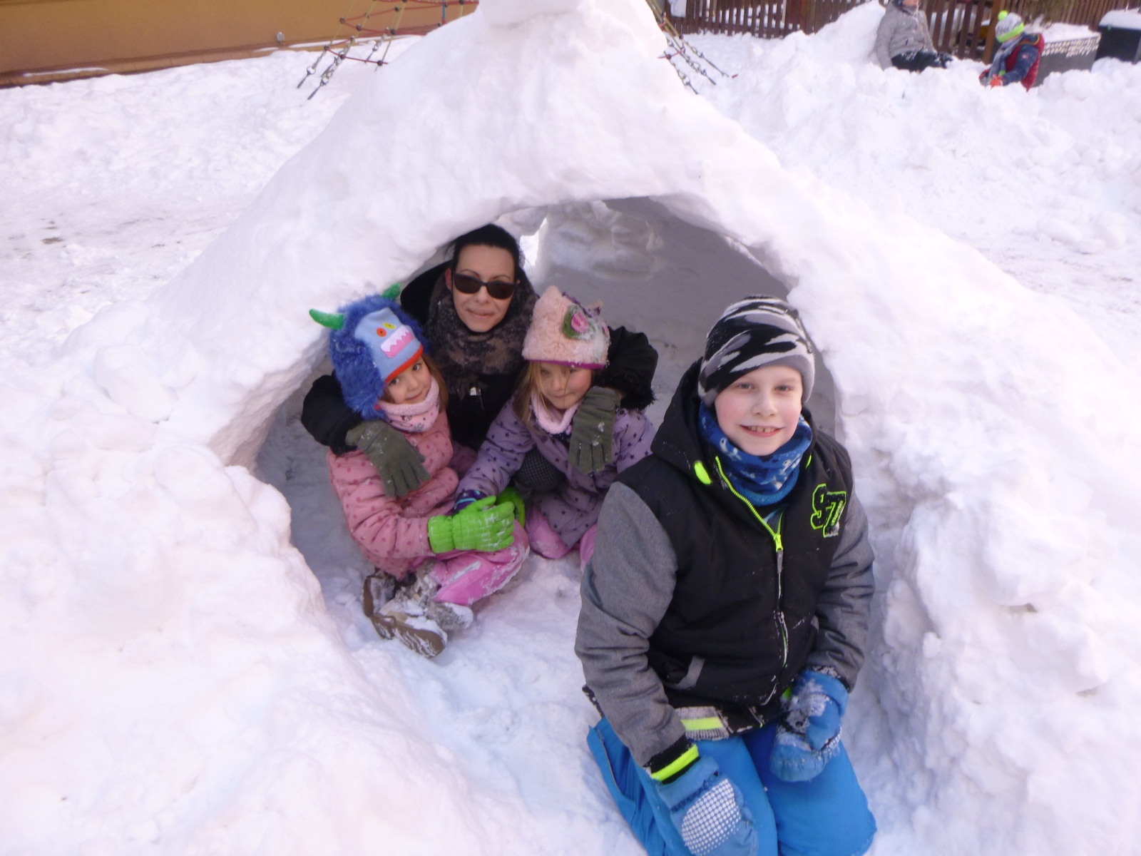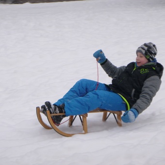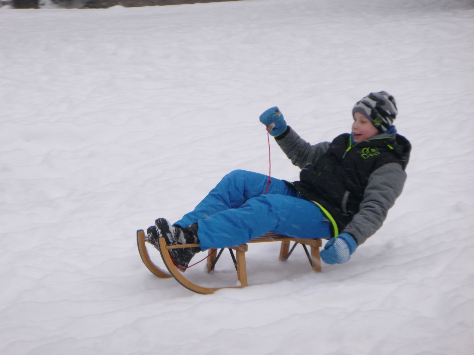 Pünktlich zum Ferienbeginn kommt der Schnee. Unsere Hortkinder reisen täglich mit dem Schlitten an. Besser kann man die Winterferien nicht verbringen.