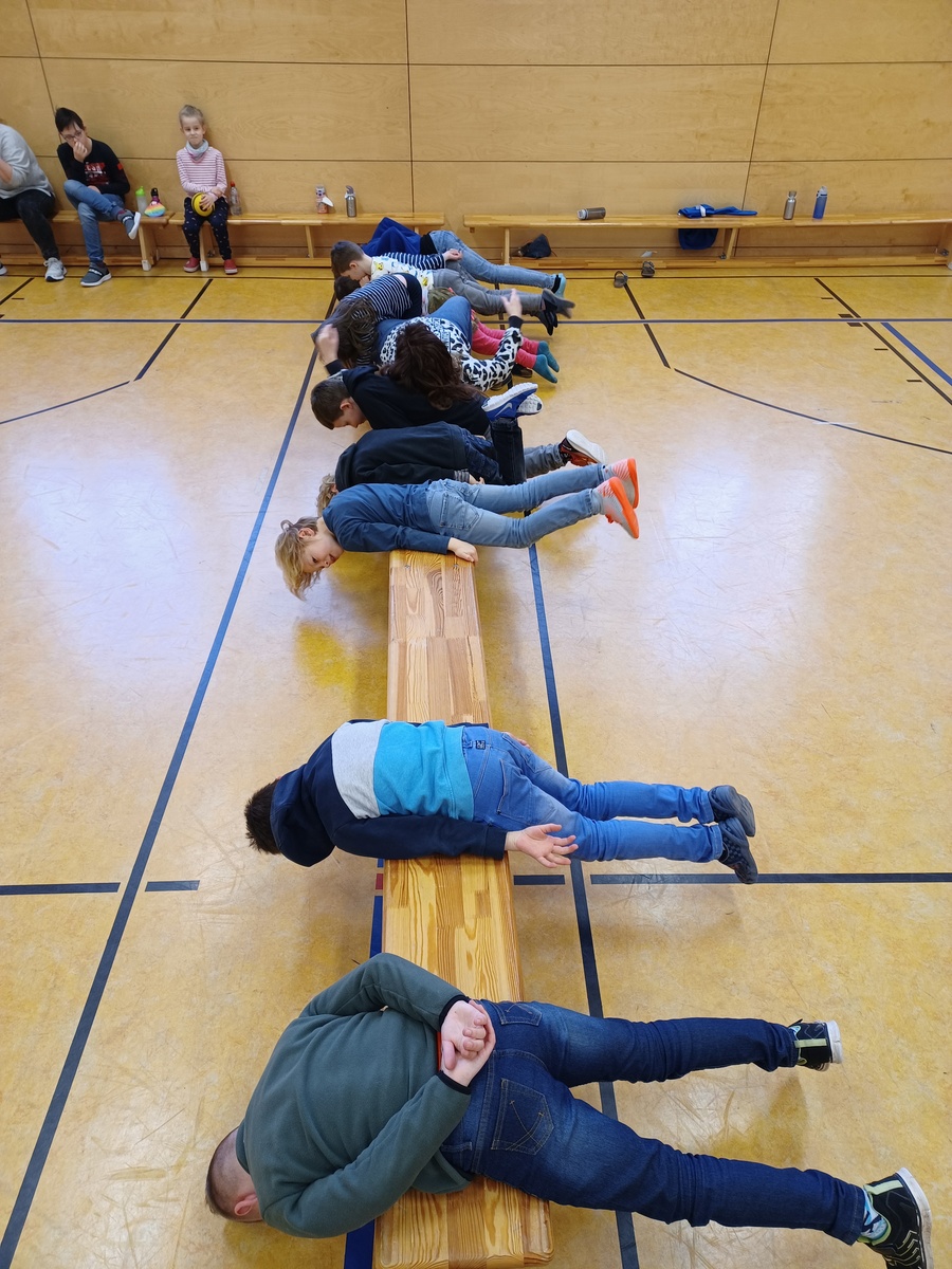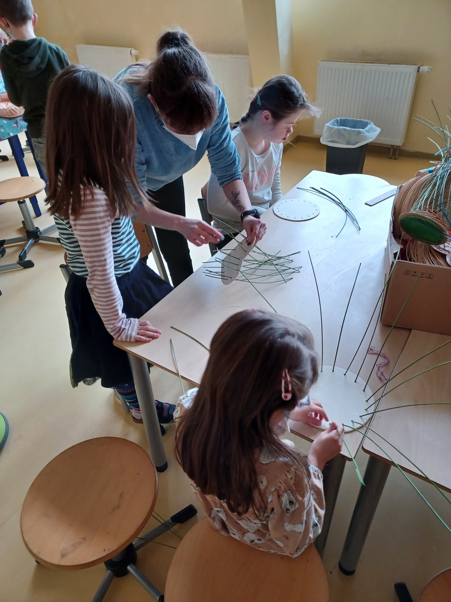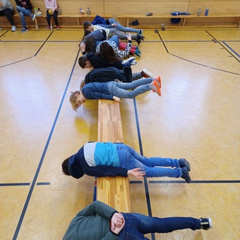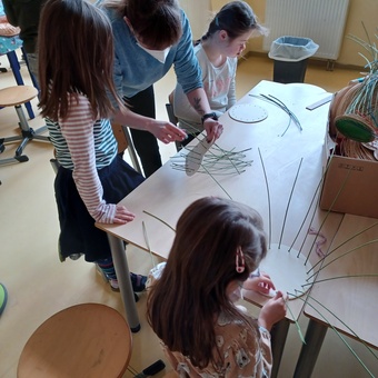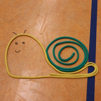 Ob beim Abhängen in der Turnhalle, oder beim Labyrinth, die Kinder waren begeistert bei allem dabei. Es wurden Körbe geflochten und mit Seilen Formen - oder auch Schnecken - gelegt.