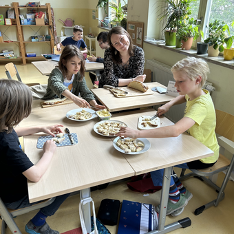 Die Kinder brachten landestypische Speisen mit und ein langes Europa-Buffet konnte so zusammengestellt werden. Den Kindern hat es sehr gemundet und auch die Erwachsenen kosteten die Leckereien! Ein toller Abschluss!