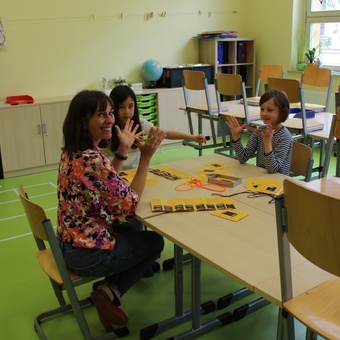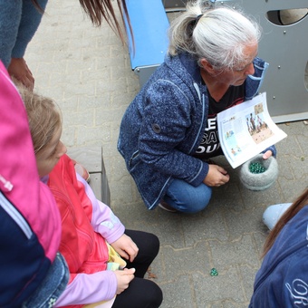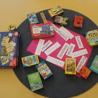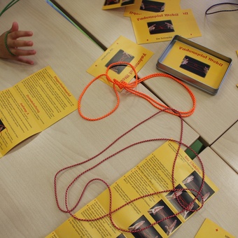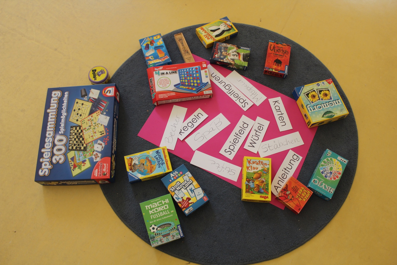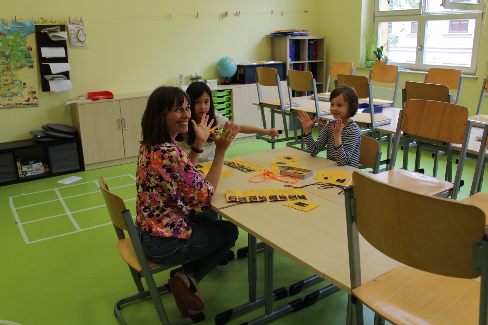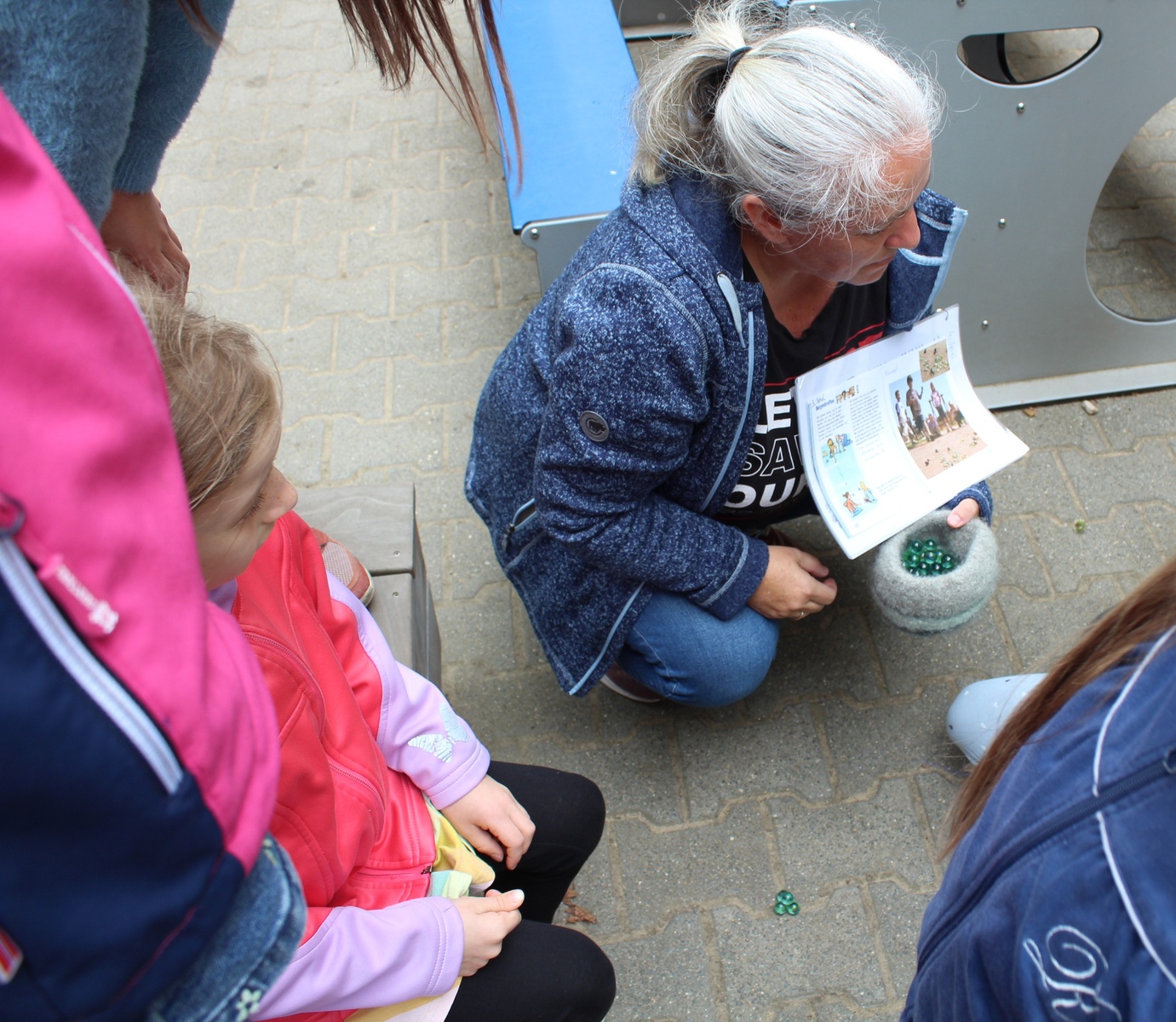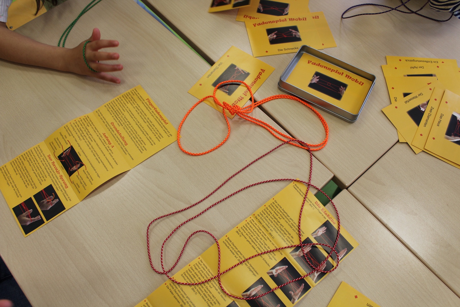 Auch Gesellschaftsspiele, Spiele aus aller Welt und Fadenspiele wurden ausprobiert. Vergnüglich waren vor allem die „alten“ Draußenspiele wie Gummitwist, Himmel&Hölle und Kieseln. So mancher Erwachsene konnte es kaum erwarten, mitzuspielen…