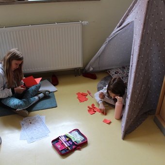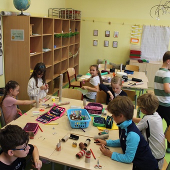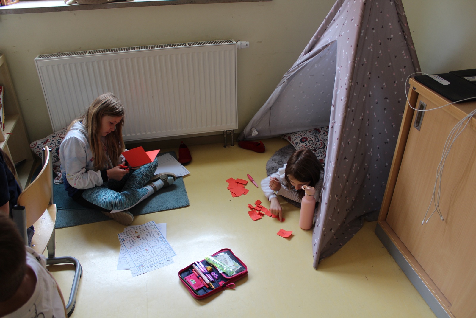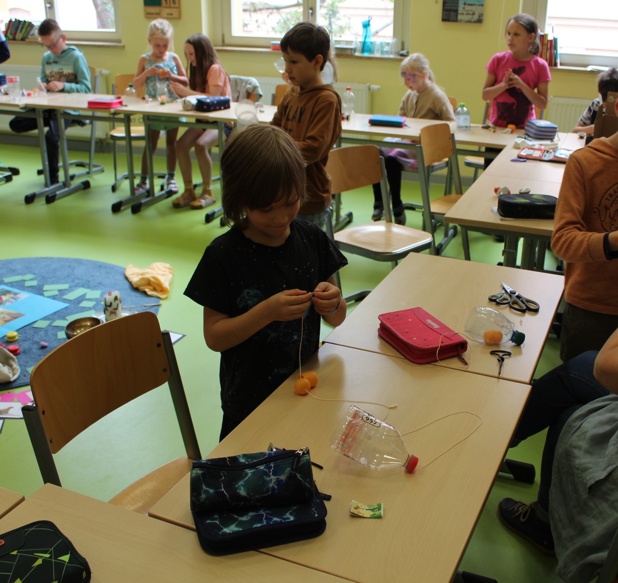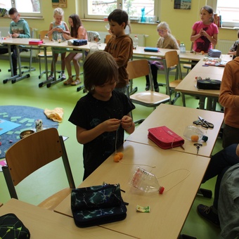 Im Anschluss an diese Sporteinheit konnten die Projekte beginnen. Die Angebote waren vielfältig, so konnten Murmelbahnen gebaut, alte Kinderspiele kennengelernt und eigene Spiele erfunden werden.