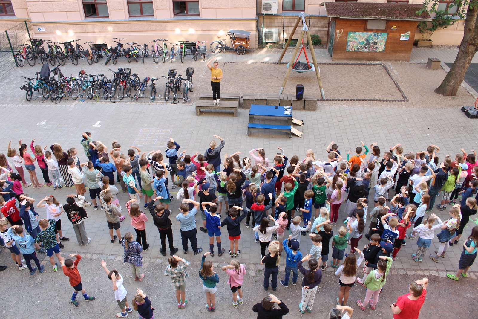 Die Kinder der Schulgemeinschaft konnten über das Thema der Projektwoche abstimmen und so gab es einen Gleichstand zwischen „Sport“ und „Spiele“. Glücklicherweise lassen sich diese Bereiche kombinieren und so wurde eine Projektwoche unter dem Leitgedanken „Sport und Spiel“ geplant. Gekrönt wurde sie vom Sportfest am Freitag, das in Anlehnung an die Olympischen Spiele mit dem Fackeleinzug der Klassen begonnen wurde.